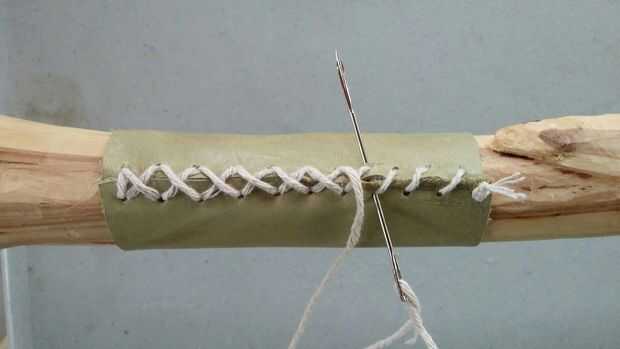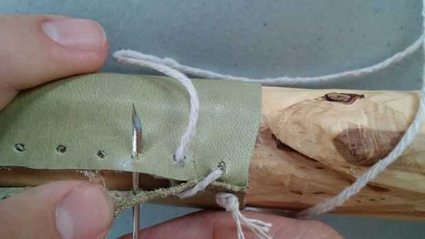Envuelva la piel alrededor de la manija. Será a partir de un extremo y avanzar hacia el otro.