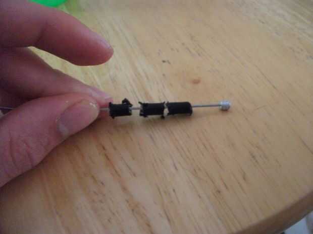 Toma tus 5 longitudes de cable del engranaje y el hilo los trozos de tubería a cada cable (tres bits para los dedos) y dos bits para el pulgar