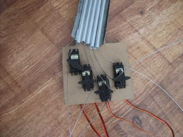 Cada longitud del cable a través de su brazo de servo correspondiente del hilo. Asegúrese de que el brazo esté al principio y final de un giro (esto es para conseguir la máxima contracción de los dedos cuando los servos están activos). Una vez que estés feliz con la longitud del cable, bucle por el extremo opuesto del brazo de servo, esto debe bloquearla (si necesita cualquier aclaración sobre este paso por favor pregunte, me tomó un tiempo para descubrirlo).