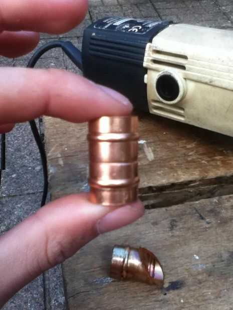 Si se trabaja desde una tubería de cobre de longitud completa, medir las longitudes de cada dedo y entonces cortado a la medida con una amoladora.