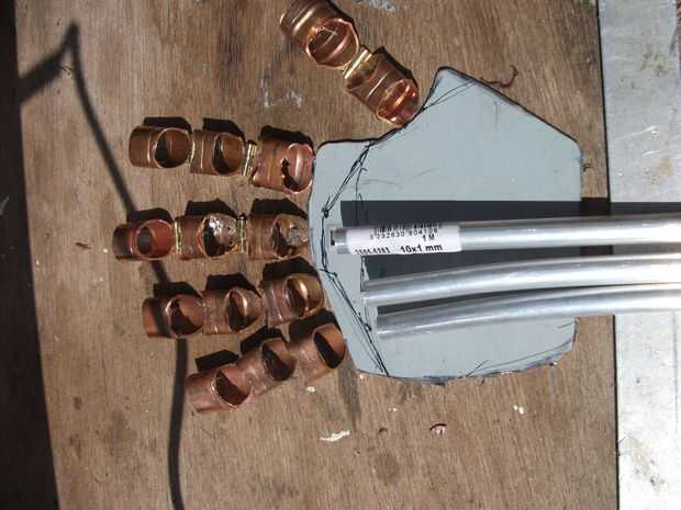 Doblado cada tubo a un ángulo diferente a la altura de donde se sentaba cada dedo en la palma. Esto es un poco difícil de comunicarse por escrito así que espero que las fotos deben ayudar.
