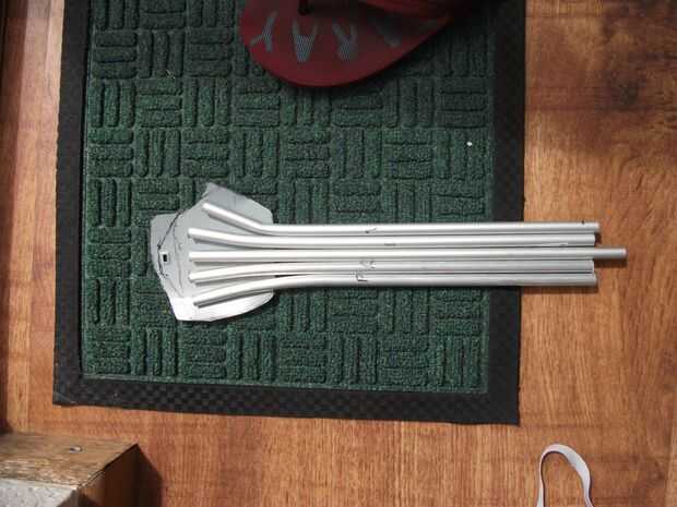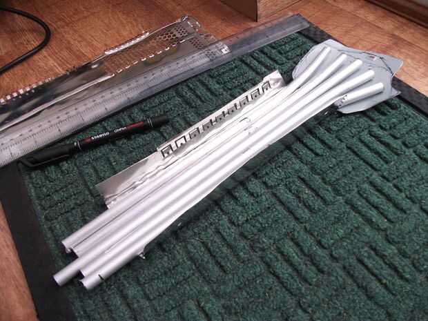 Doblado algunos hoja de aluminio muy delgada y flexible (el tipo usado en los ordenadores etc.. He encontrado en mi antiguo xbox 360) en forma de soporte curvo. Se redujo a sobre la misma longitud que el tubo de aluminio (arreglado hasta las longitudes más tarde con mi Dremmel). Dejar sobrante por lo que se puede conectar a la palma.