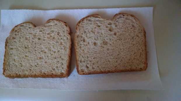 Sacar dos trozos de pan y los ponen al lado de la toalla de papel