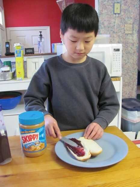 cuando estaba en primer grado tuve una tarea para aprender a hacer un sándwich de PB & J.  En caso de que no tienes esa lección en la escuela, o si ha olvidado, he proporcionado instrucciones paso a paso para hacer el perfecta mantequilla de maní y j