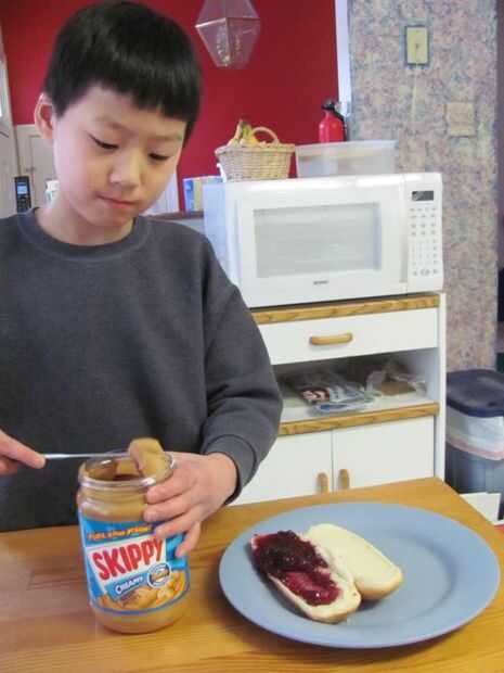 cuando estaba en primer grado tuve una tarea para aprender a hacer un sándwich de PB & J.  En caso de que no tienes esa lección en la escuela, o si ha olvidado, he proporcionado instrucciones paso a paso para hacer el perfecta mantequilla de maní y j