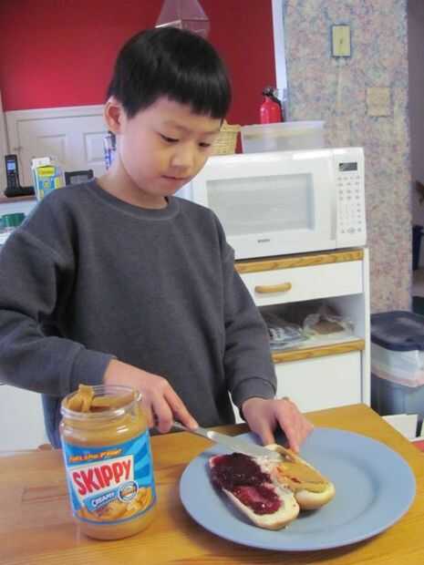 cuando estaba en primer grado tuve una tarea para aprender a hacer un sándwich de PB & J.  En caso de que no tienes esa lección en la escuela, o si ha olvidado, he proporcionado instrucciones paso a paso para hacer el perfecta mantequilla de maní y j