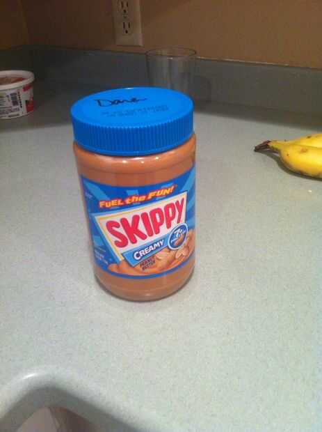 cosas que usted necesitará:* Pan (me gusta pan de Hot Dog)* Uva jalea (squeeze bottle)* Mantequilla de maní* Cuchillo* PlacaPaso 1: Abrir el bollo de pizza en la placa.Paso 2: Exprimir algunos jalea en un lado del moño.Paso 3: Difundir la jalea con e
