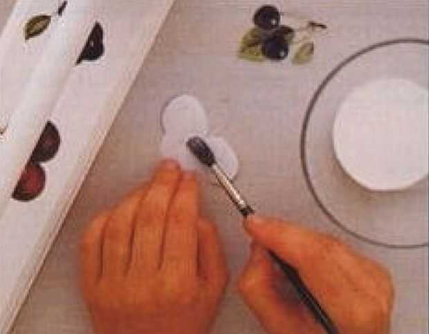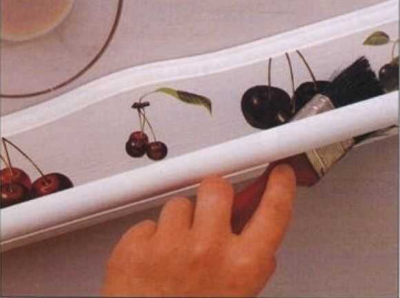 - Cuando esté satisfecho con el arreglo, pegar los motivos sobre el fondo usando pegamento PVA (blanco) diluido con un poco de agua. Algunas personas prefieren utilizar pasta de papel pintado, ya que es resbaladizo cuando está mojado, permitiendo que las imágenes para deslizarse fácilmente en su posición.