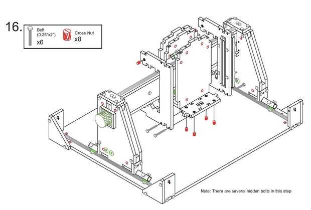 Si has dicho esto ahora debo felicitar y sugerir sólo obtiene mejor desde aquí. Mirando el montón de piezas pensando en cómo se las arregla para convertirse en una máquina puede ser un poco abstracta por lo que he intentado mi mejor crear instrucciones tan cerca de los producidos por LEGO. (descargable en el pdf adjunto CNC montaje.pdf). Pero en aras de la diversión en el camino aquí es un timelapse de mí juntando mi máquina.