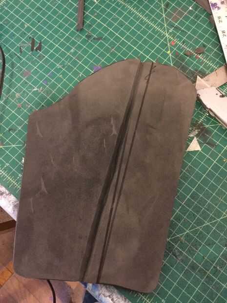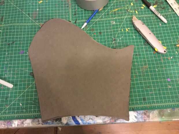 2. uno tienes la plantilla de papel, se usa para trazar y cortar el patrón fuera de espuma de EVA (Foto 2). La curva en este golpeteo es donde va la parte interna de la articulación del brazo. Quería buena movilidad en el juego.