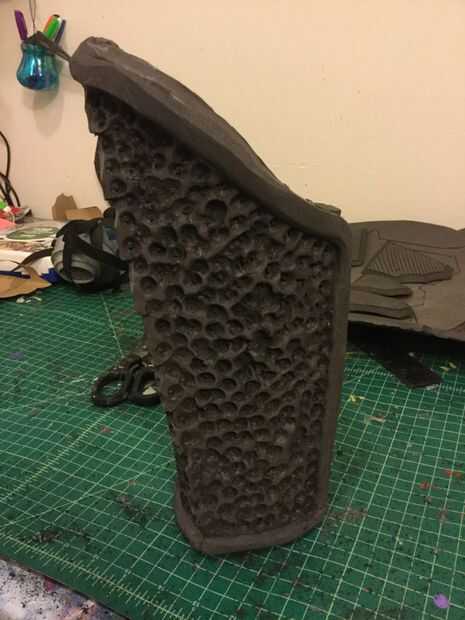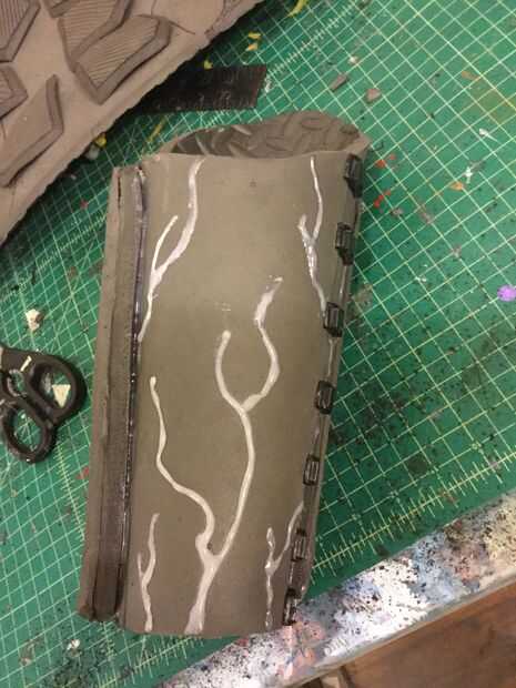 9. utiliza otro poco de dremel para crear una textura diferente alrededor de las venas como quisiera ir para una mirada más orgánica con el traje. me olvide de tomar una foto de esto, pero el estilo de la textura que utiliza para esta parte también se ve en la rótula (ubicada en el siguiente paso)