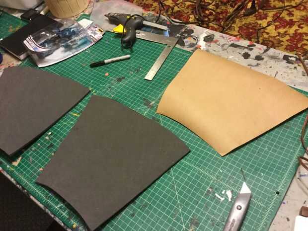 1. siempre comenzar con plantillas de papel. En primer lugar, obtener sus dimensiones en cuánto necesita el guantelete que. Generalmente obtengo una medida de muñeca para la articulación de codo. A partir de ahí, corté un rectángulo que envuelva alrededor del antebrazo se. Luego cortar a la medida y los extremos de la curva un poco (porque la muñeca es un diámetro más pequeño que la parte superior de su antebrazo. (Foto 1, no de esto construir, pero premisa sigue la misma).