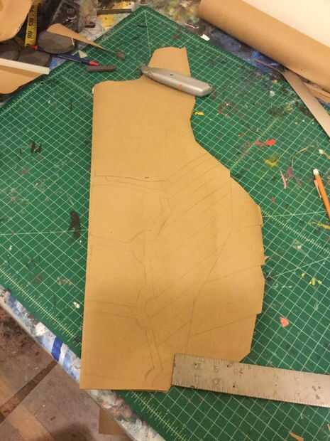 1. Tome la medida desde la parte superior de su hombro un poco por encima de su cintura. La razón que no es la medida de su cintura es para compensar qué tan amplia es la correa. Entonces usted necesita tomar la medida de su ancho. Quería ser más un chaleco, así que estaba bien con no tener los lados conectar directamente en una sola pieza uniforme. de todos modos, una vez que sus medidas, traslado a papel y doblar por la mitad. Dibujar el diseño en la hoja de la mitad y luego cortar. una vez que se despliegan el papel, debe tener una plantilla de papel simétrica (Foto 1). La transferencia a la espuma de EVA y recortar. Esta es su "base". Realmente corte el pecs de este paso (para convertirlos en una pieza totalmente independiente). Sólo dio un poco margen de maniobra extra espuma en la parte superior de esta base para que el pecs podría ser pegado en capa. .