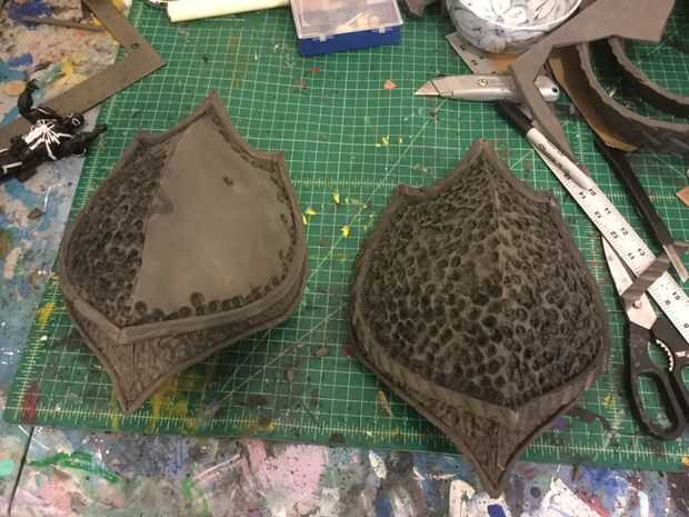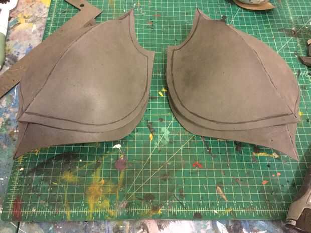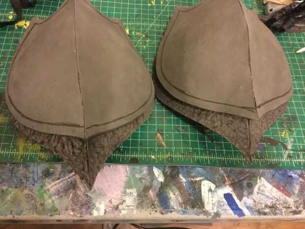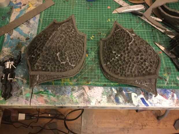 4. los hombros tienen un bajo capa así que hice los siguiente fuera de espuma de EVA. Utilice la plantilla, cortar hacia fuera y pegarlos junto (pic 4 + 5)
