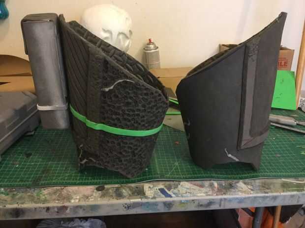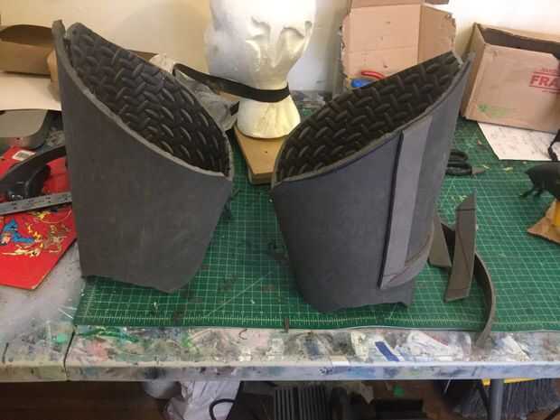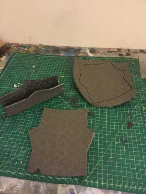 1. comenzar con un patrón de papel. en realidad usé dos trozos de papel para conseguir lo que quería. una vez que lo tienes, corte de espuma de EVA y pegar la piezas juntas (Foto 1)