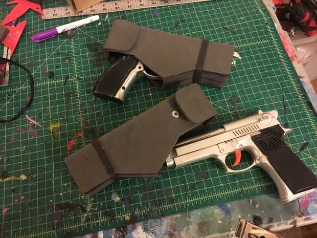 7. añade una tira de espuma de arte para parecerse a la pistolera atada alrededor de los muslos. (Foto 9)