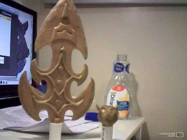 9) igual con el spear, puré retazos de worbla en el conector de PVC y en la cabeza de Pantera...