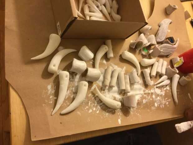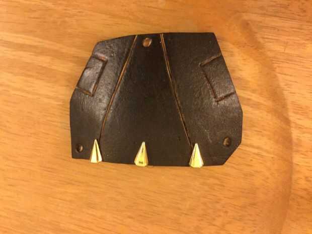 -ponemos pedrería roja en estas joyas circulares nos hechas de termoplástico para los guanteletes.