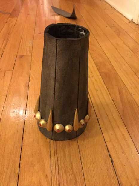 -Si quieres un color metálico plateado que no es super brillante, rocíe la plata primero y dejó seca. Una vez seca, pintar sobre la pieza con pintura acrílica negro diluido en agua y limpiar dentro de 5 a 10 segundos. Hacer esto hasta que consigues el efecto deseado. Esto se hacía en los acentos de la máscara y los guantes.
