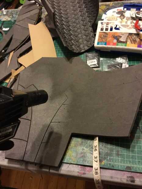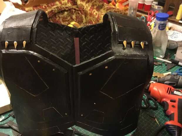 Ahora que todo está construido, puede poner en sus surcos / muescas... Esto ayudará a crear acepta en su traje... después de todo, el juego todo es negro... se verá mucho mejor con algunos adornos.