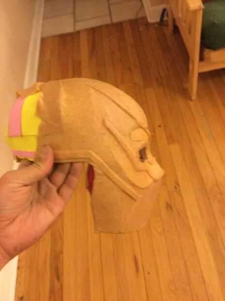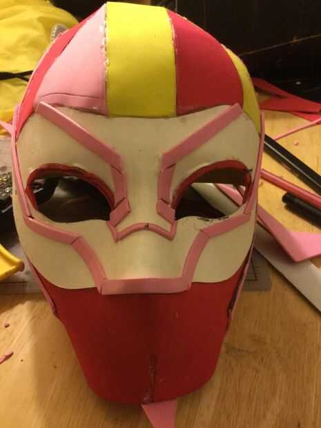 5) crear sus oídos haciendo triángulos de espuma. Worbla esos y añádelos a continuación sobre el casco
