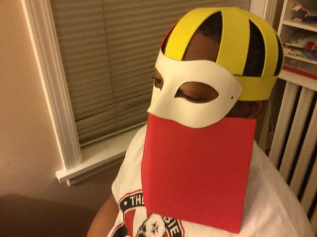 1) necesitará hacer una corona para tu máscara... Suelen hacerlo con cartulina, pero se puede hacer con espuma también. Mi construcción detallada de un cuervo es aquí: siga los pasos, pero en lugar de utilizar cartón, uso espuma de artesanía