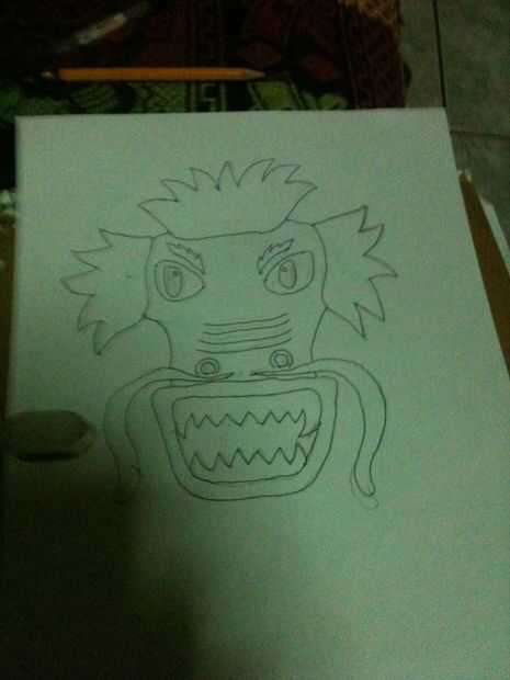 Una vez que estés feliz con la cabeza, esbozar las líneas que usted necesita con un lápiz (Foto 2).