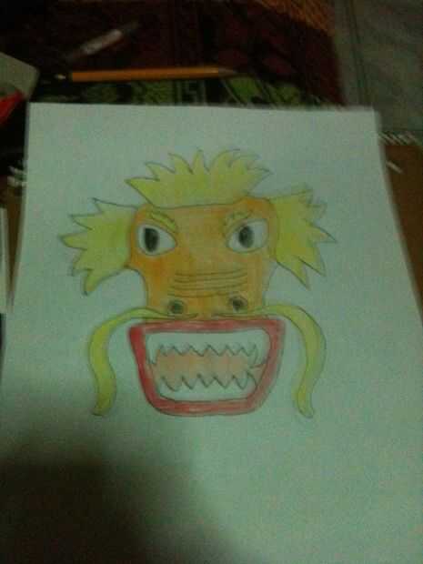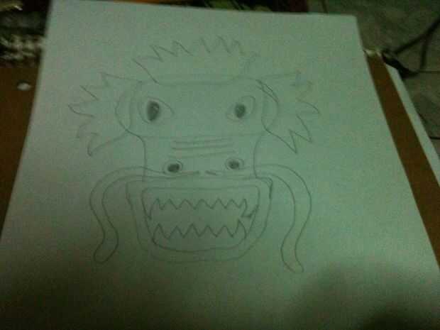 Borrar las líneas de lápiz visible y luego de color encima de la cabeza. Normalmente, los dragones chinos son colores brillantes como rojo y amarillo. Pero he visto unas azules en algunas ocasiones (Foto 3). Luego, cortar la cabeza.