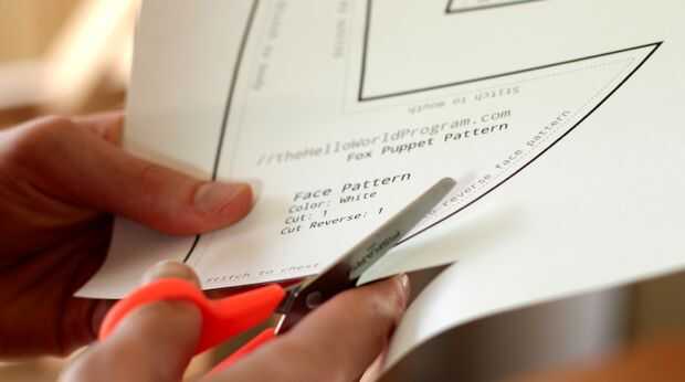 Descargar el patrón de títere zorro atado. El patrón está optimizado para estándar los E.E.U.U. carta 8.5 x 11 pulgadas de papel. Algunas impresoras pueden intentar cambiar el tamaño de la página, así que compruebe sus opciones de impresión para algo así como "Escalado de página" y establézcalo en cualquier elección parece impide que la impresora cambiar el tamaño de la página. Una vez que se imprime, se corta a lo largo de las líneas negras gruesas.