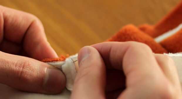Si forran la costura de la cara con la costura de brazo correctamente, la pieza de la cara debe llegar a la punta de la nariz casi exactamente. No te preocupes demasiado si es un poco apagado, sin embargo.