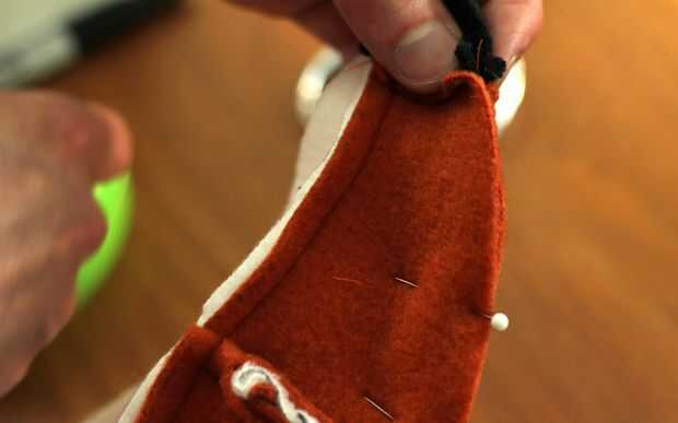 Con ambos lados de la pieza de la cara, tórax cosida al cuerpo, podemos acabar la cabeza por alfileres y coser la cabeza de costura juntos. Asegúrese de prender los lados del derecho juntos y alinee las costuras de dos oídos.