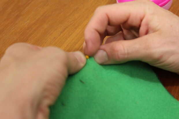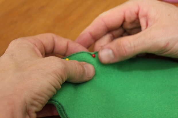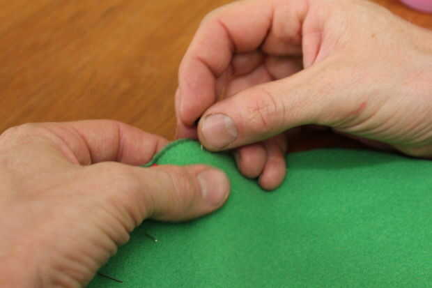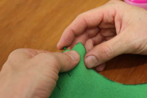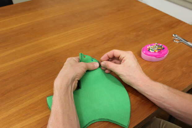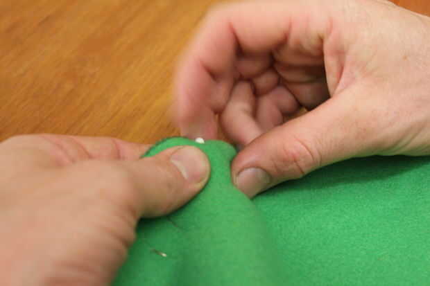 PIN juntos. Esto es muy importante. Usted no quiere deslizarse alrededor en usted mientras está cosiendo lo contrario la cabeza de títeres será grumosa y desigual. Que no es necesariamente una mala cosa.