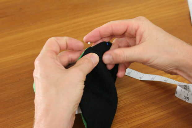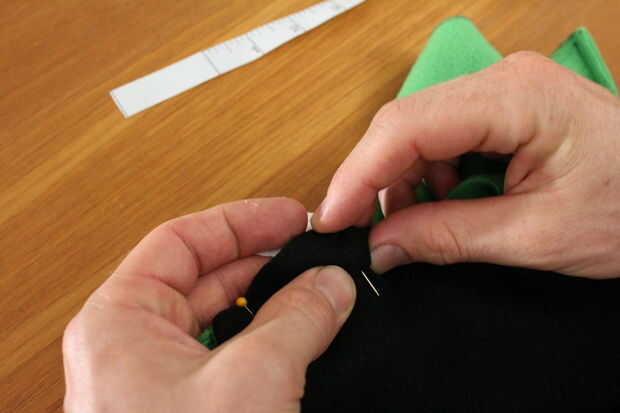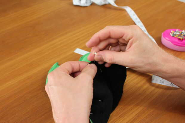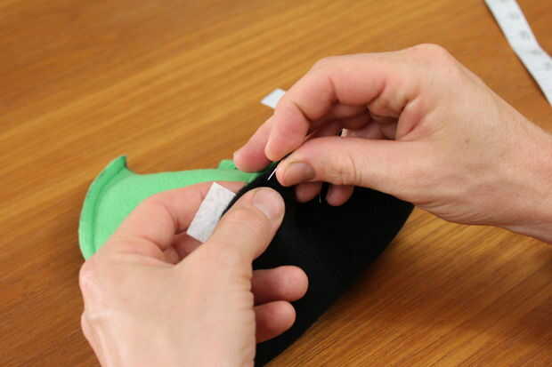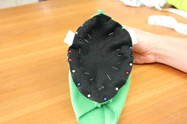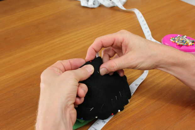 Pin el diente en su lugar. Es mucho más fácil coser si usted perforar a través de las tres capas: cabeza, dientes y boca. También es más fácil coser si pones el pin más lejos de la orilla. De esta forma que no tendrás que tirar de la clavija mientras ejecuta la pieza a través de su máquina de coser. Si tienes el espacio, utilizar dos o más pines.