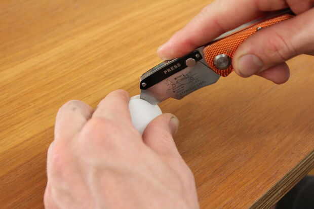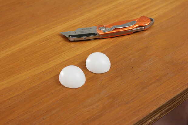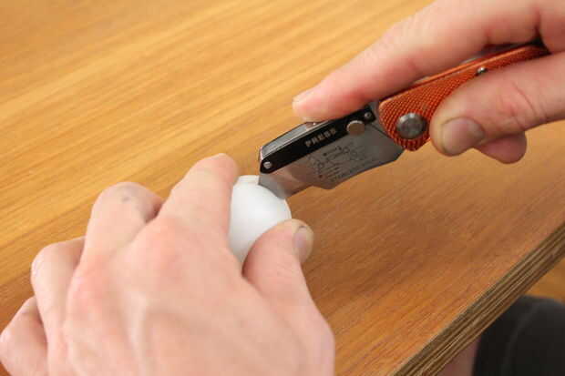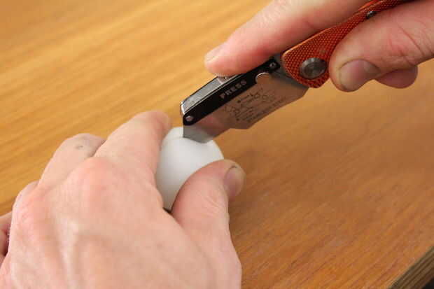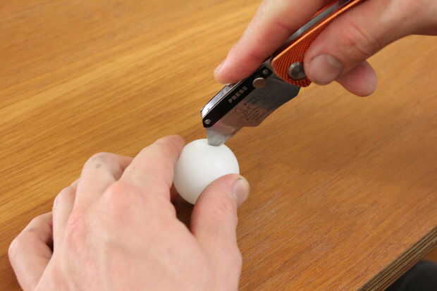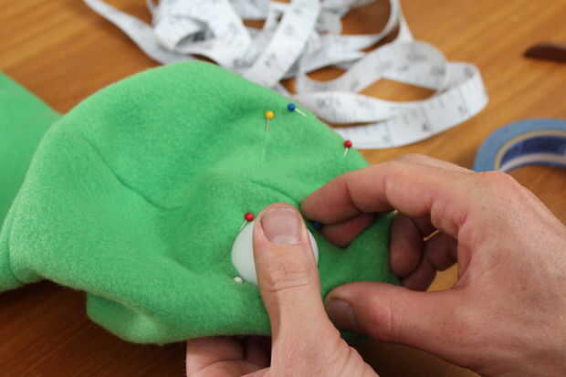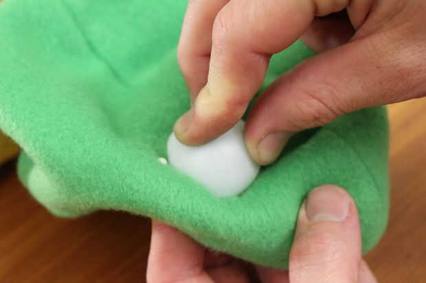 Entonces cubrió alrededor de cada pelotita de ping pong, creando una pluma (una pluma pin!) para marcar la ubicación de cada ojo.