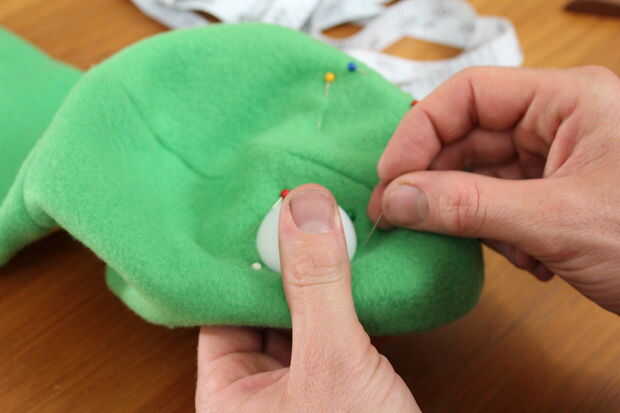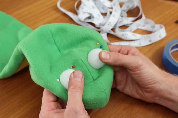 No hay ninguna manera fácil de fijar los ojos. Mide una pulgada de la costura central y mirado por el ojo (valga la redundancia) la colocación hacia adelante y atrás en la cabeza.