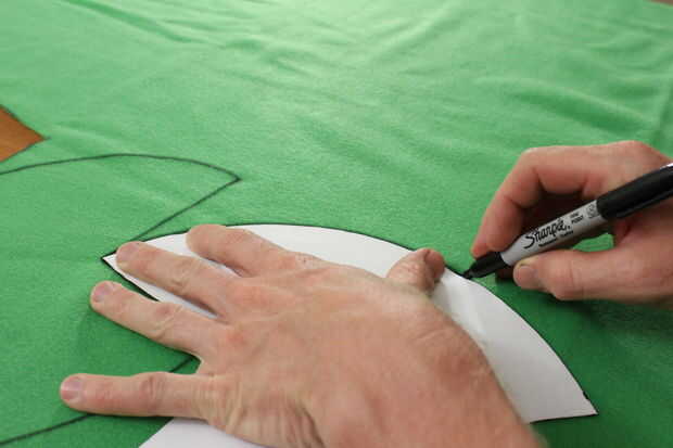 Trazar el patrón y luego voltear el patrón. Esto es importante si su paño grueso y suave más textured por un lado y si usted está usando un marcador. Quieres las texturas que se mostrará en el exterior y la tinta (si está usando un marcador) que está escondido en el interior. ¿Además, ver cómo coloca los patrones tan cerca uno al otro? Es ahorrar a tela para futuros títeres.