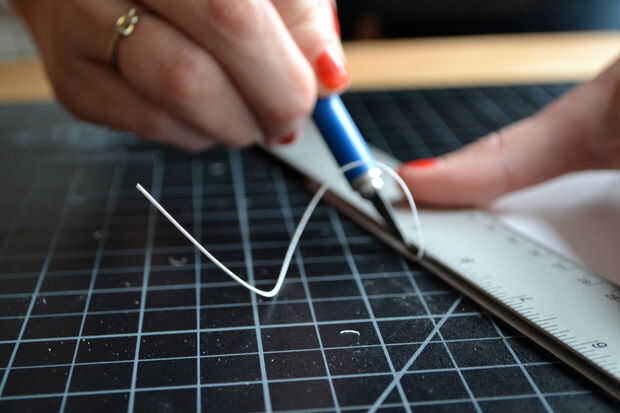 15. para el anntennas, coge un trozo grande de cartulina. Con una navaja, corte una tira desde el borde del papel tan estrecha como sea posible – debe rizar el papel.