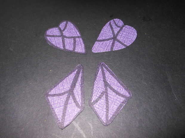 Tomar el marcador y línea a lo largo de los bordes y las líneas en las alas del papel de la vid.  Ver fotos de mariposas para obtener ideas.  (Parece que faltó uno, mierda).