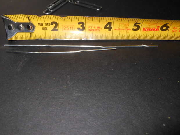 Desplegar los clips de papel y hacerlos lo más recto posible.  Corte una 5½" largo y los otros 4 pulgadas de largo.