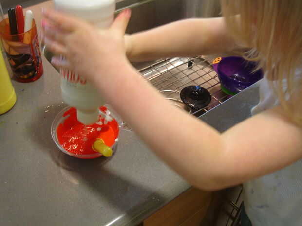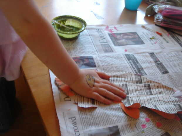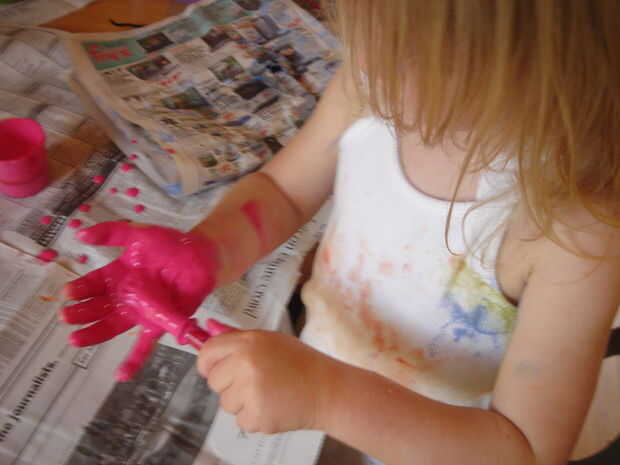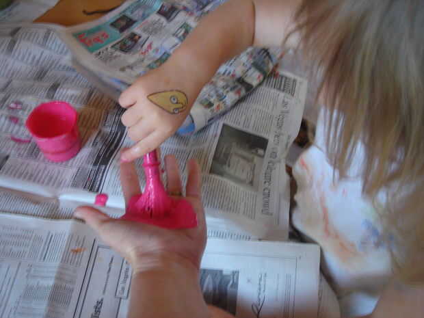 Satisfacer necesidad de nuestra hija a pintar todo, incluso a sí misma.