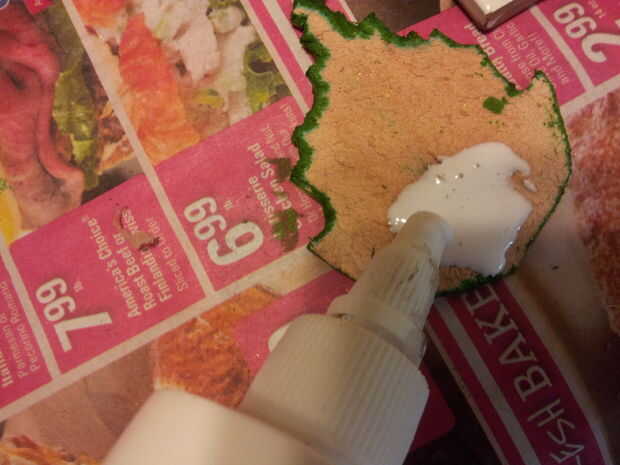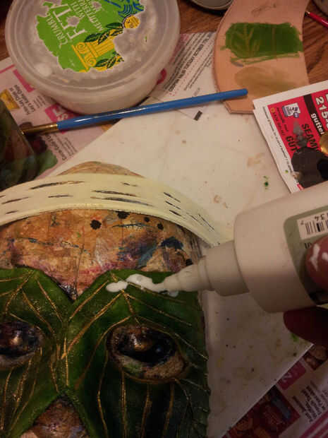 A continuación coloque las hojas más pequeñas en la correa de cuero. Aplicar la soldadura de cuero en la parte posterior de las hojas y abrazadera en. Una hoja se fija en el centro de la frente. Los otros dos se señalan hacia atrás a cada lado.