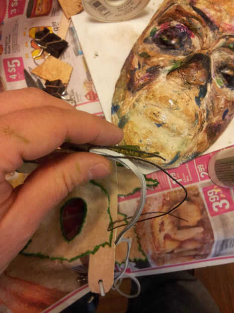 Tome un pedazo de cera amenaza y formar un bucle que se encuentran en la parte superior donde se unen las piezas de encaje. Permita que la cola del bucle que sobresalga.