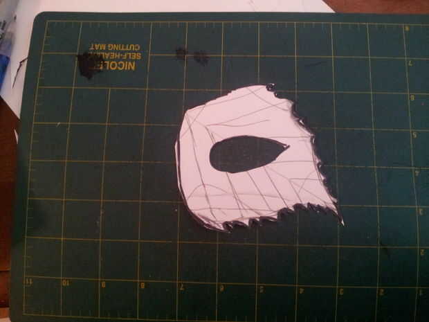 Cuando empiezo con un nuevo molde de la cara, creará una máscara de la copia cero con cuero de chatarra para que puedo conseguir todas las características alineadas correctamente. He utilizado este molde de cara bastante ya tengo algunas plantillas de máscara básica que me muestre donde son características de la máscara. Tomé una de esas plantillas y copiado a la mitad si en la cartulina.