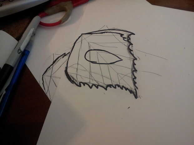 En este punto, se dibuja una hoja de abedul plateado sobre el área donde haya copiado la plantilla, alineación de todo para crear la mitad de la porción de la cara de la máscara. Haciendo sólo la mitad de una plantilla facilitará tener una máscara simétrica.