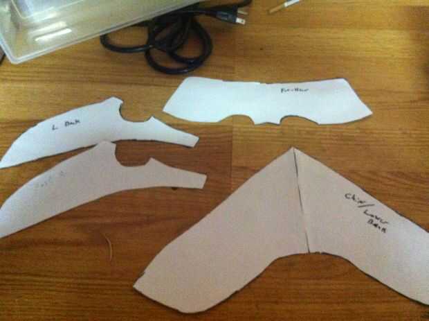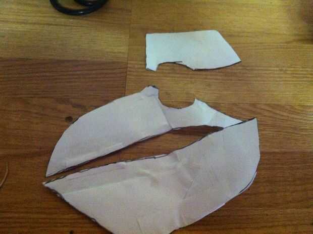 Después de tener esas piezas iban a tomar la frente y la mandíbula inferior / pico y poner en otro pedazo de papel, dobla el papel por la mitad y ponga la línea sólo cortar hacia abajo hacia el pliegue. Trazarlo, luego córtelo hacia fuera otra vez. Esto parece un poco raro, pero confía en mí, será sentido en el siguiente paso.