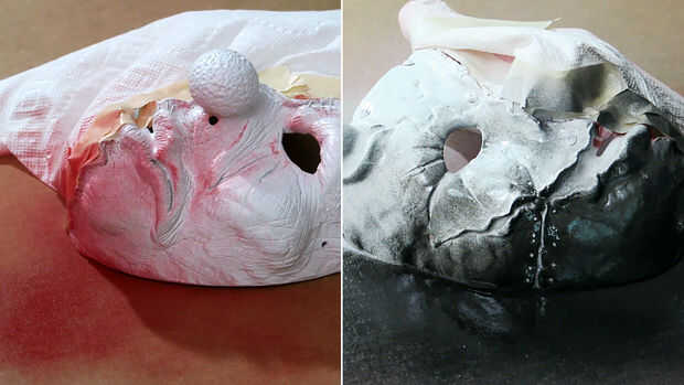 Para añadir algún color adicional puede utilizar pintura en aerosol color la capa base en la mascarilla.