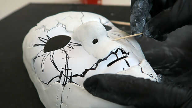 Utilice sus herramientas, guantes y un palillo de dientes para modelar varios tipos de textura en la mascarilla. Hay toneladas de grandes tutoriales en línea para diferentes texturas que pueden esculpir.