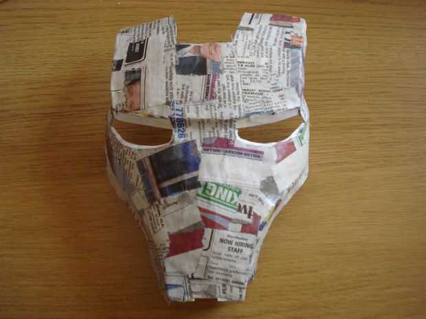 Una vez que tengas esa base es sólo un caso de la adición de capas de periódico y pegamento. Añadido 4 en total, pero solo les sigue añadiendo hasta que la máscara parece lo suficientemente espesa.