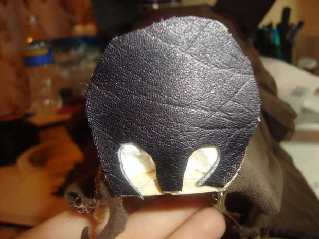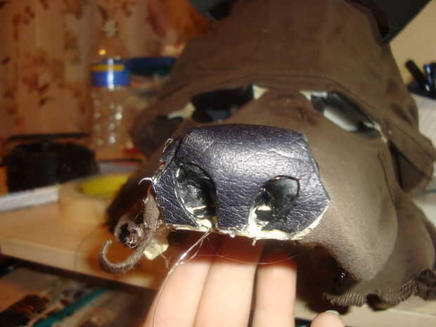2: Cortar la nariz y pegar a la parte frontal de la mascarilla. (Foto 3 y 4) Estas fotos son de mi primera máscara y la nariz que elegí es un poco pequeña, pero es aún eficaz.