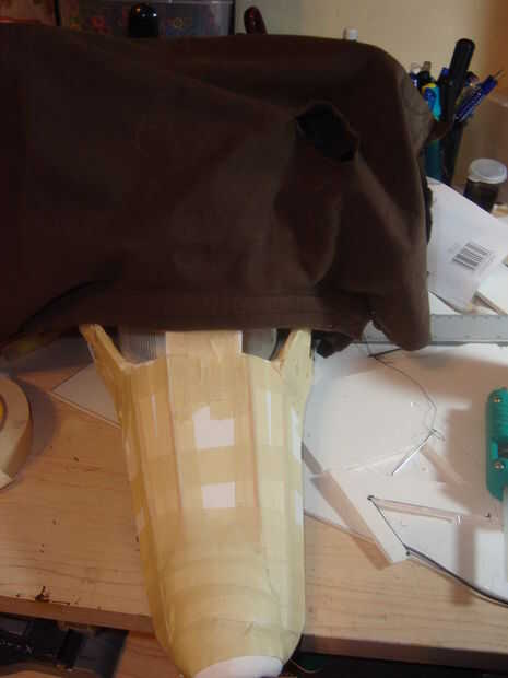 3: Tire de la tela tensa y con la herramienta de corte, cortar una línea recta donde descansa el oído. No corte un círculo, sólo una línea recta para que tire de la tela sobre el oído y se adapta bien. (Foto 2 y 3) Cuando esté seguro de que tiene los agujeros cortan correctamente, pegamento de la tela hasta la pieza de cartón pluma de centro, luego proceder a introducir en sus oídos.